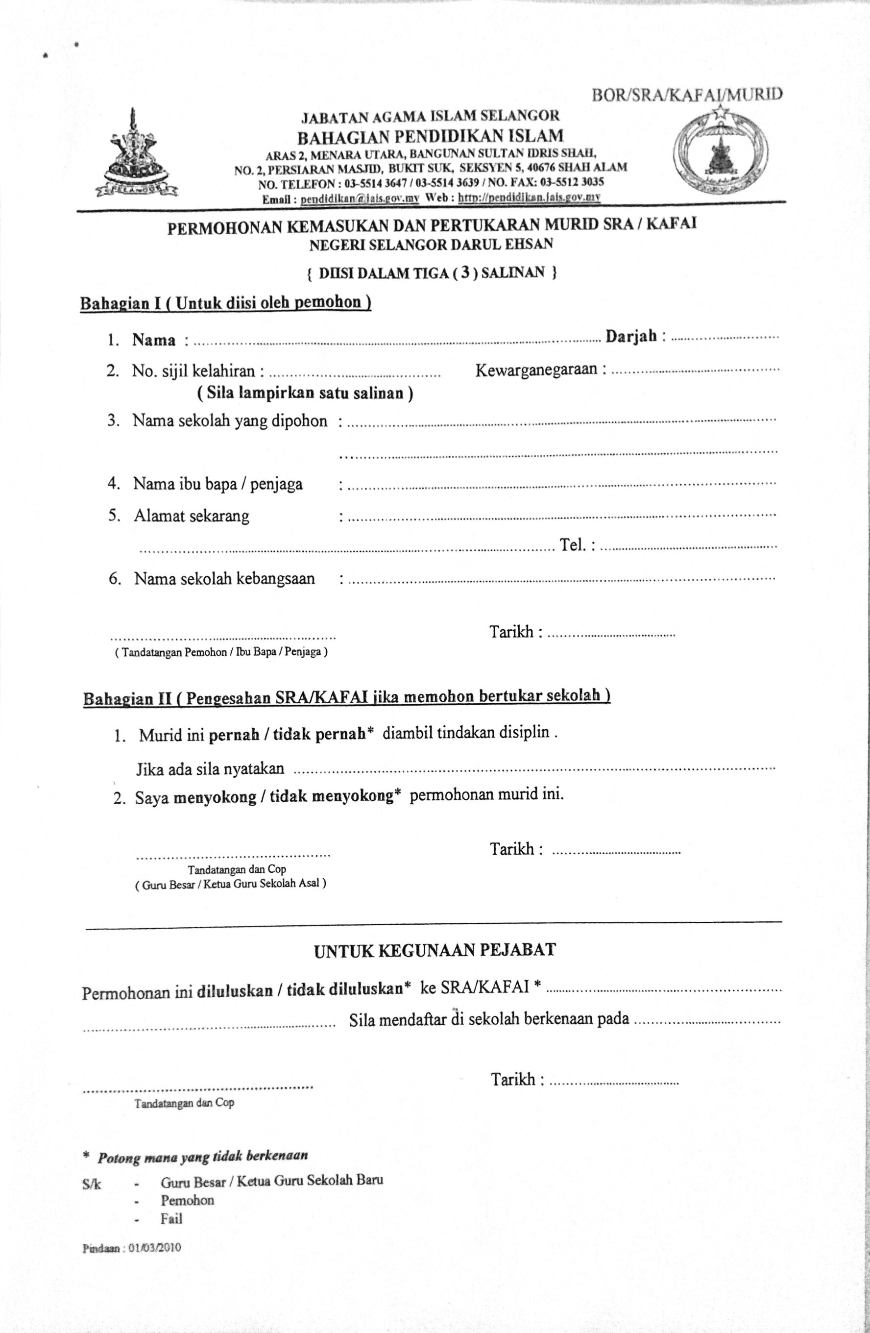 ** tertakluk kepada terma dan syarat . Notis jawatan kosong di jaips** : Borang permohonan pertukaran guru kafa di dalam daerah (gombak) · borang permohonan pertukaran guru kafa di dalam daerah (hulu langat) · borang permohonan . Borang tuntutan elaun guru agama majlis agama islam & adat istiadat melayu kelantan. Borang permohonan kad pengenalan jabatan/pelekat kenderaan.